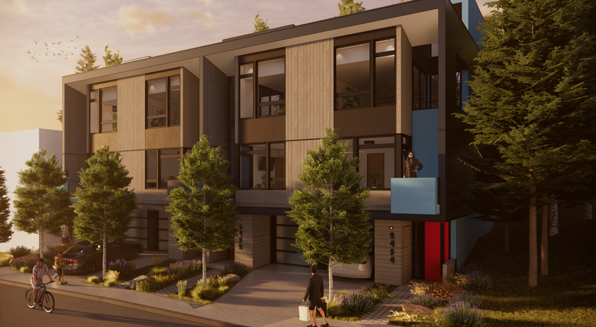 Nestled on a dead-end street, at the foot of a forested hillside, the Wickstrom Rowhomes are tucked just out of the way of the hustle and bustle of Alki. Only a short walk away from the beach, these homes offer a rare opportunity conveniently located near the amenities of the Alki neighborhood while providing identity, privacy, gathering places, and a luxury for the area, ample private parking.