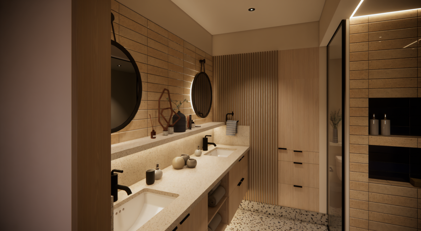 Each home’s reverse floor plan—bedrooms and bathrooms below, living/dining/kitchen above—creates an easy and natural connection from the main living spaces to the large rooftop decks, ideal for entertaining and taking in beautiful views of Alki Beach, Puget Sound, and the Olympic Mountains. In many townhomes, circulation is an afterthought; here, warm central wood screens and open stairs connect all three floors, allowing ample natural light to filter throughout the home. The decks extend daily living outdoors and strengthen the indoor–outdoor connection, opening the interiors to fresh air, neighborhood activity, and views—amenities too often overlooked in urban design and typical row houses.